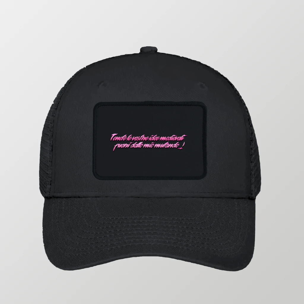 Cappellino in rete con patch frontale intercambiabile e chiusura regolabile Snapback. Versatile e personalizzabile grazie alla toppa removibile in velcro, ideale per creare look unici e dinamici.