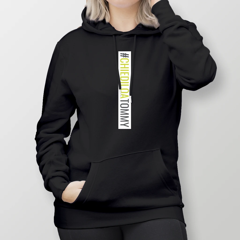 chiediloatommy verticale + qr code su schiena